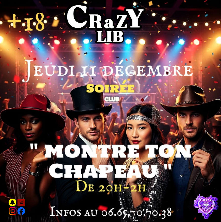 Soirée « chapeau et tenue sexy »🎩👒👑⛑️🪖🫦 (Jeu. 11.12)